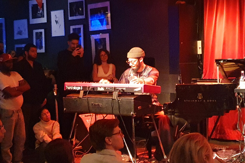 Låtarna var långa. Den längsta varade i 25 minuter. Alla fick egna solon som var det bästa jag har hört på länge. Pianisten Mike King var verkligen tangentbordets kung. Och trummisen, Jaylen Petinaud, är han ens mänsklig eller är han en demon? Det är första gången jag har sett publiken gå fram till en trummis mitt under hans solo och klappa, göra tummen upp och till och med buga sig.